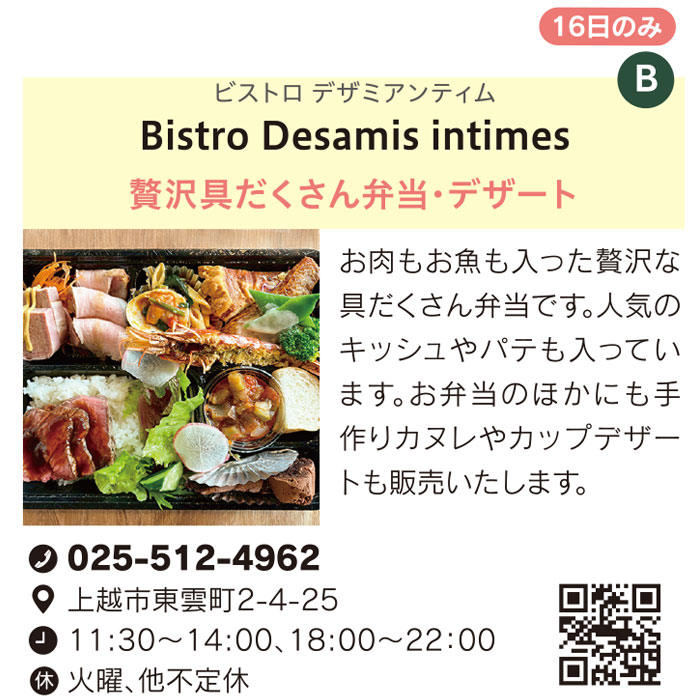 美食marche ~出会う、味わう、心満ちる2日間~ おでかけ・イベント 2025.10.24深まる秋、11月に贈る美食のひととき。11月は地元の人気店を巡る美食マルシェへ。作り手のこだわりと情熱が詰まった、この時期一番おいしい旬のグルメが大集合!気楽に楽しんで、心もお腹も満たしてください。日時:11/15(土)10:00-17:00、16日(日)10:00-16:00会場:直江津ショッピングセンター エルマール1F イベント会場