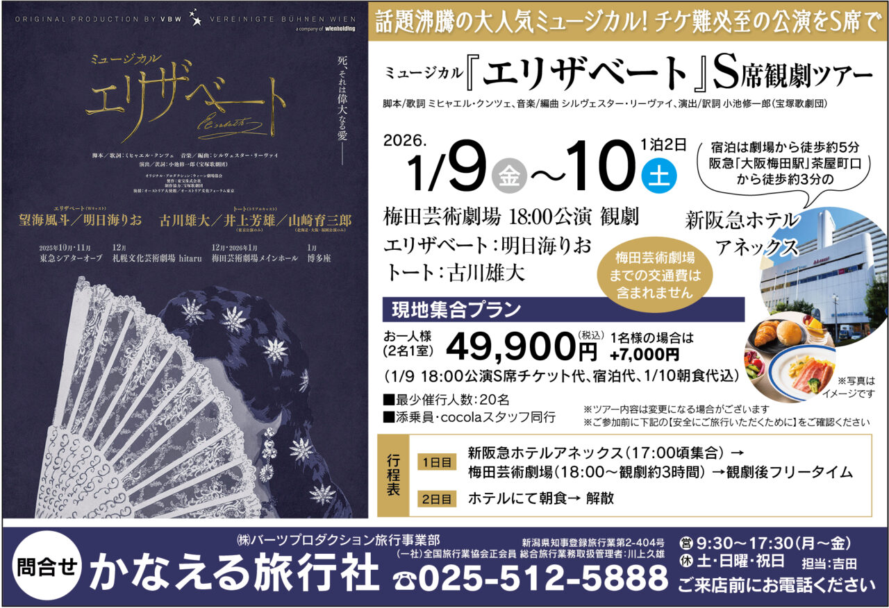 (1/9 18:00公演S席チケット代、宿泊代、1/10朝食代込)
