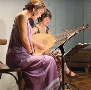 ソプラノ髙橋美千子・低音リュート=テオルボ佐藤亜紀子による【たまひび】が出演。深い低音に表現豊かな歌をのせて。
