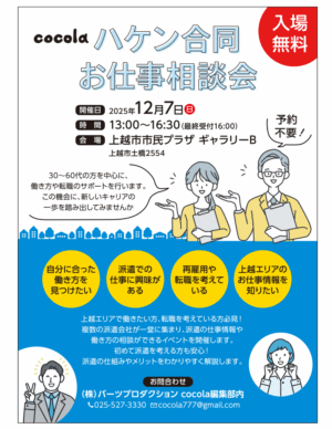複数の派遣会社が一堂に集まり、派遣の仕事情報や働き方の相談ができるイベントを開催します。