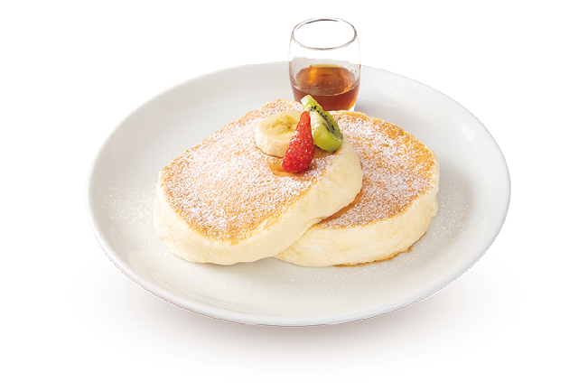 高倉町珈琲自慢のふわふわリコッタパンケーキ。選べる4種のソース付き。